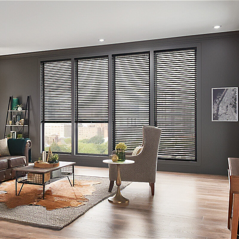 Our aluminum window coverings are both practical and contemporary, available in warm tones and textures to meet current trends. These window treatments resist dust, stains, and scratches, offer excellent light control, and are well-known for their dependability.