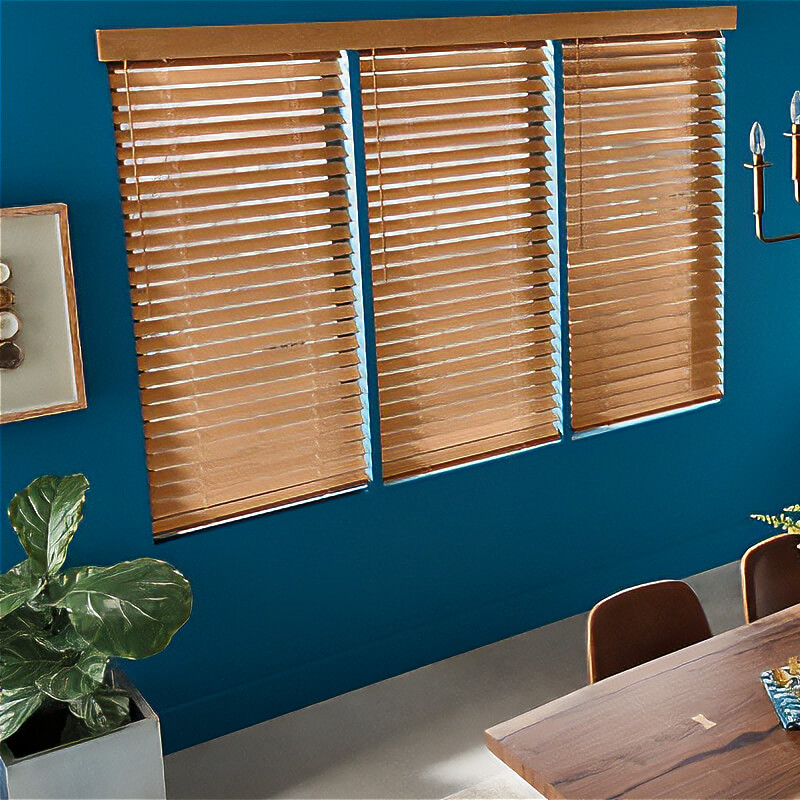 Our faux wood blinds, made from fire- and moisture-resistant PVC, bear solid colour slats or patterns closely resembling real wood grain, marrying the charm of natural wood with modern engineering.