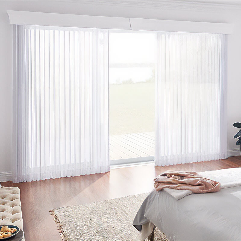 These vertical coverings are durable and easy to operate, serving as an affordable solution for regulating light on wide windows and doors. They come in fabric options from sheer to room darkening, with sheer variants emulating the appearance of drapery but providing the light control and privacy of blinds.